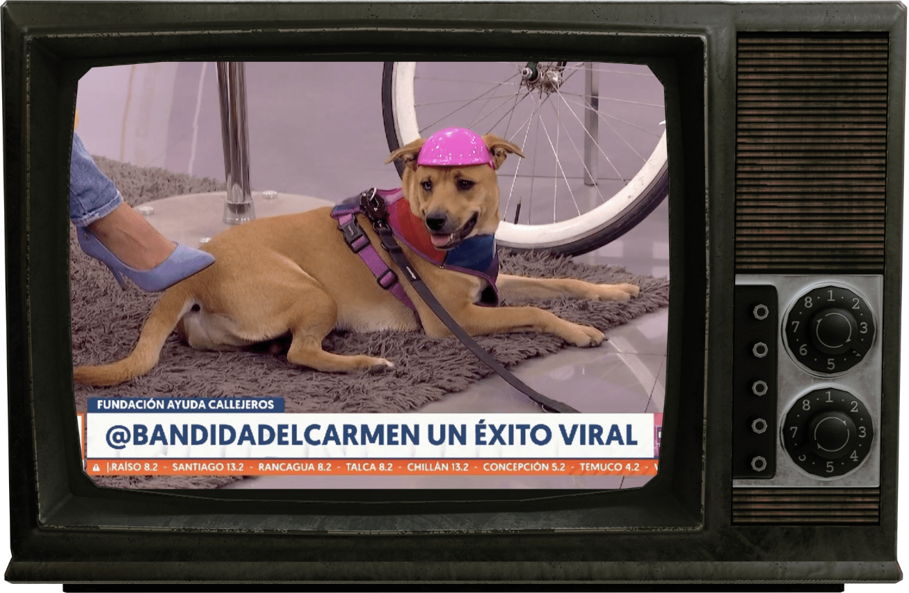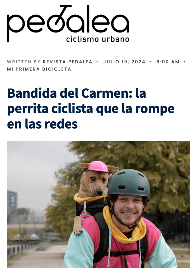 Desde las colinas más empinadas hasta los estudios más prestigiosos, Bandi ha pedaleado directo al corazón del público. Con su inconfundible casco rosado, un ojo azul y otro marrón llenos de curiosidad, Bandi ha sido protagonista de entrevistas donde comparte sus aventuras sobre ruedas, anécdotas peludas y su amor por los paseos con estilo. Además, aprovecha cada micrófono para ladrar fuerte y claro sobre la importancia de adoptar con responsabilidad y darles a todos los lomitos una vida llena de amor, cuidado… ¡y muchas bicis!